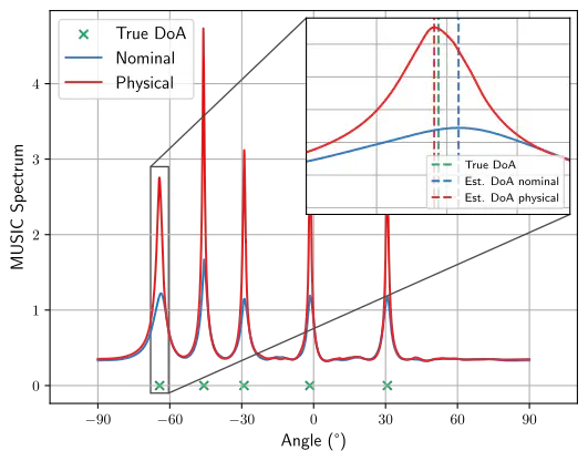 A new preprint entitled Physically Parameterized Differentiable MUSIC for DoA Estimation with Uncalibrated Arrays just appeared on arXiv. It is a collaboration with Henk Wymeersch’s team at Chalmers University (Baptiste Chatelier works currently there) which shows that antenna impairments can be learnt while using a subspace method for source localization.